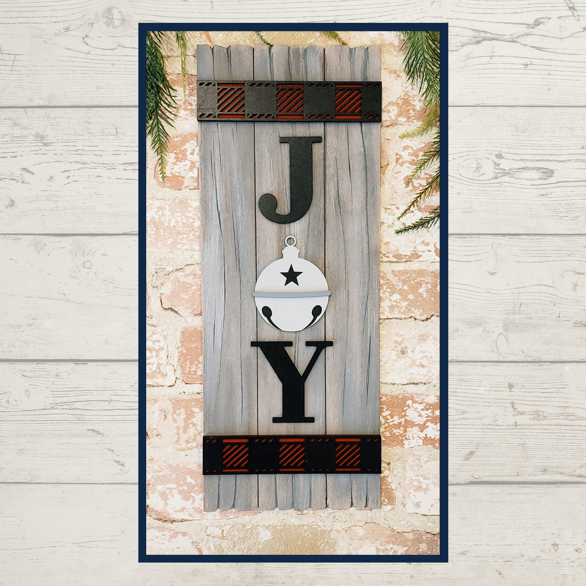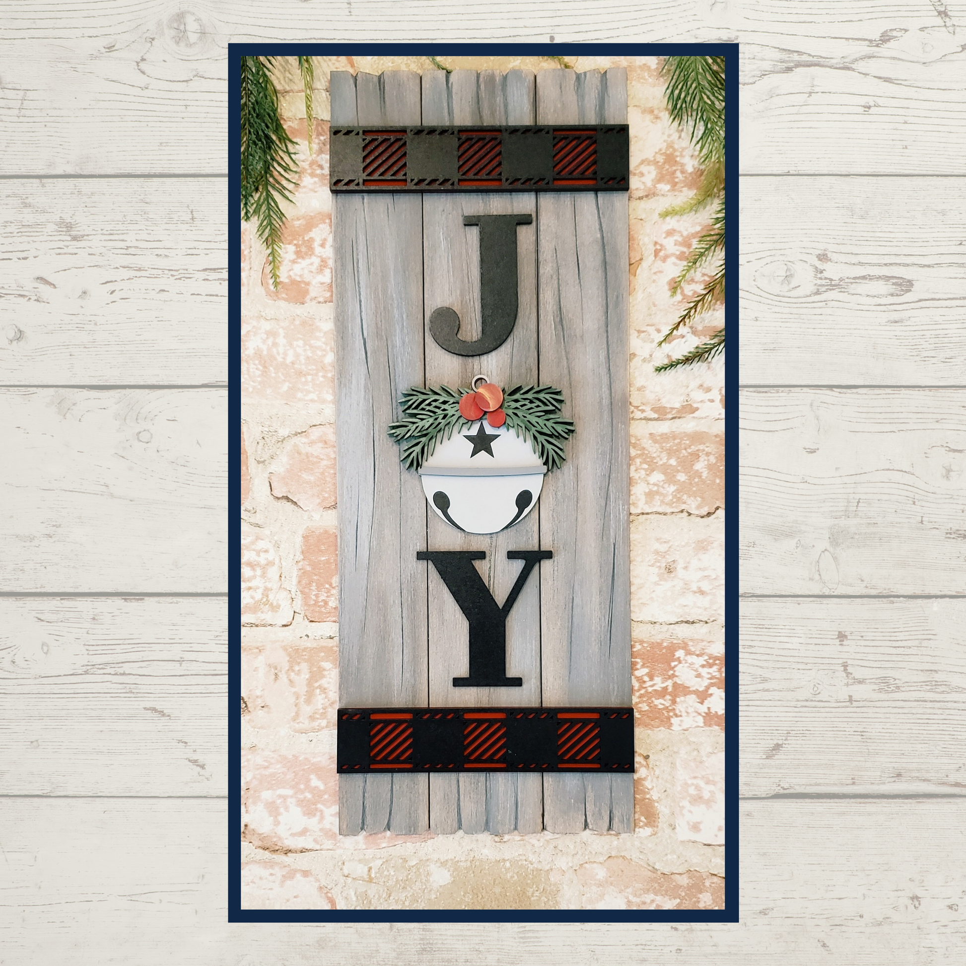You will receive the top layer of the leaner in the photo. It includes the letters "J" and "Y" and a bell and greenery that make the "O". It also includes the two plaid cross bars.