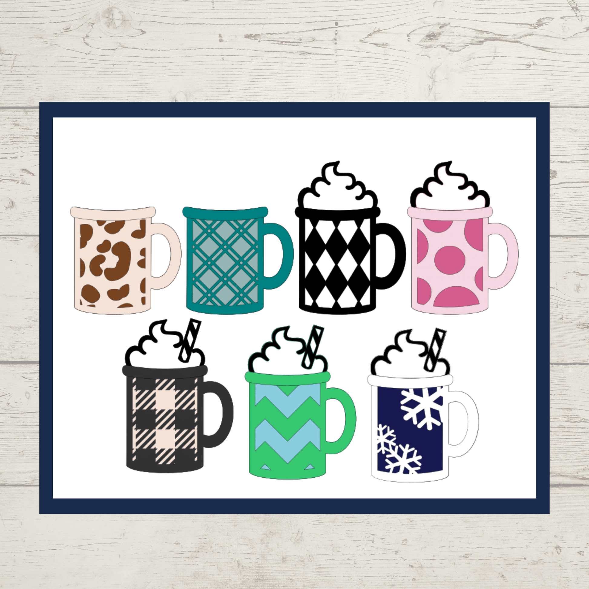 The file includes a shiplap round, a few different mug combinations, and the words "Winter Wishes & Cocoa Kisses."